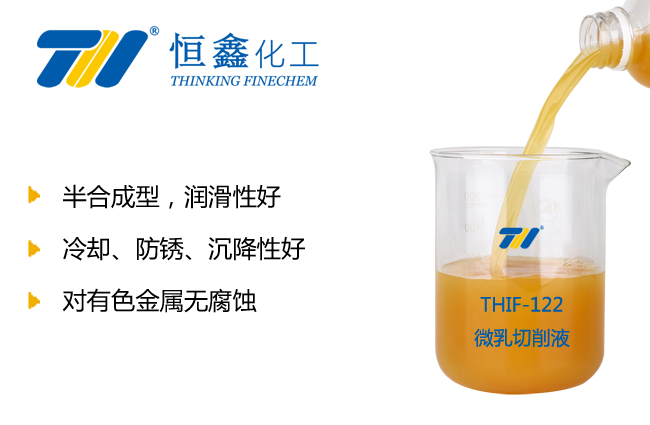 產(chǎn)品簡介THIF-122微乳切削液含特殊的極壓添加劑和油性劑,具有良好的極壓性、潤滑性、防銹性、潤濕性及冷卻性,相比于全合成切削液的優(yōu)勢是潤滑性更強(qiáng),且對銅鋁等有色金屬無腐蝕,適用于黑色金屬及鋁銅合金等有色金屬切削加工。產(chǎn)品性能①采用優(yōu)質(zhì)潤滑劑和防銹劑,具有良好的潤滑、防銹及冷卻性能。